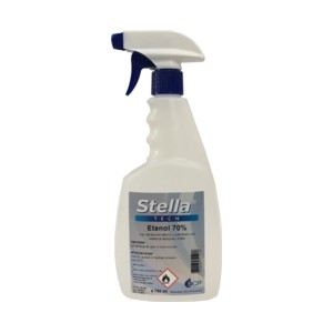 70% raztopina v demineralizirani vodi se v priročni pršilki uporablja za čiščenje trdnih površin.